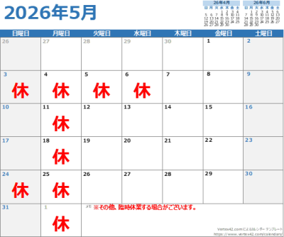 5月の定休日